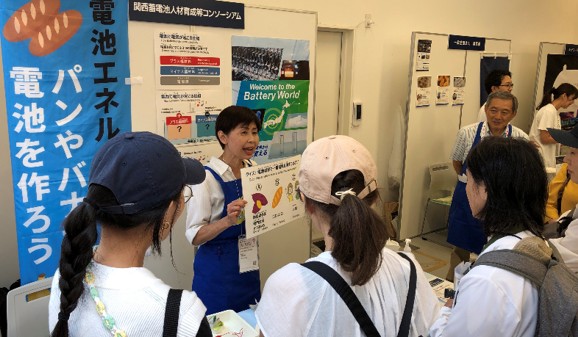 関西蓄電池人材育成等コンソーシアム(※)の活動の一貫として、大阪関西万博の関西パビリオン「多目的エリア」の徳島県催事にて、電池工業会は10月8日(水)に「電池エネルギー体験教室」の出展を行い、計221名の方のご来場頂きました。